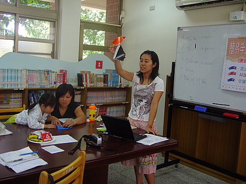 最後一堂的手工作品~紙風車&球杯,更是獲得志工媽媽們間熱烈討論,